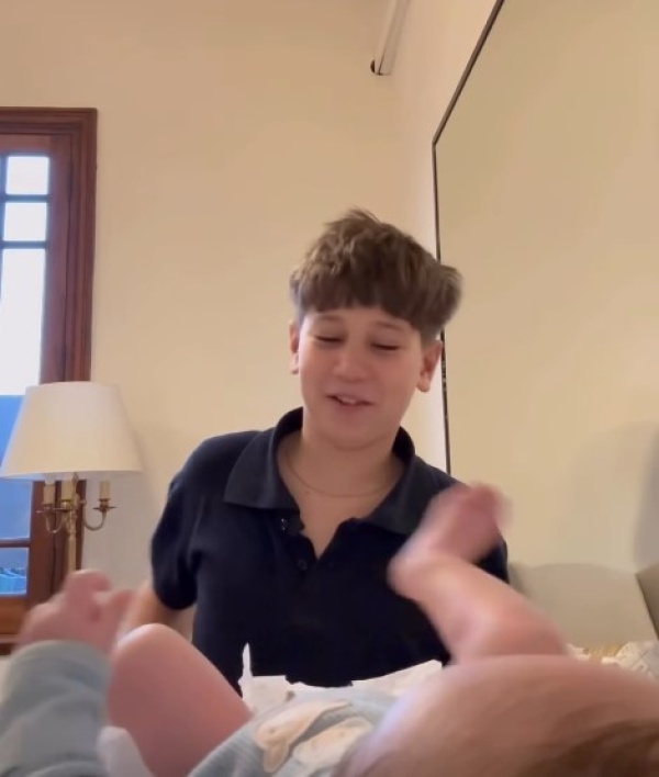 Desde el inicio, Momo mostró una mezcla de nervios y entusiasmo. Jimena, con su estilo cálido y natural, lo alentó entregándole los elementos necesarios: “Bueno. Ahí tenés los pañales”. Así, con una guía amorosa pero firme, lo ayudó a enfrentar una tarea nueva dentro del rol de hermano mayor.
