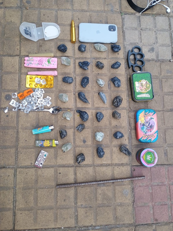Los implicados, aprehendidos antes de concretar el robo, fueron registrados por los oficiales, quienes hallaron 28 envoltorios con estupefacientes listos para su comercialización y venta.