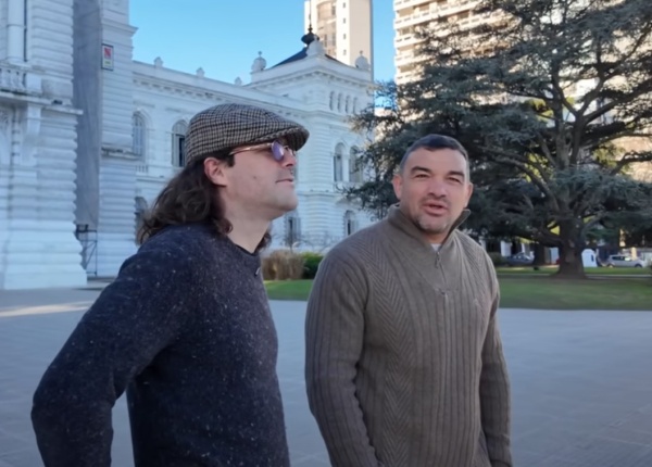 A través de un video, el exPuma dio a conocer el encuentro con el actor donde la jornada comenzó en el imponente Teatro Argentino, donde ambos se mostraron admirados por la arquitectura del edificio y compartieron impresiones sobre la historia cultural de la ciudad.