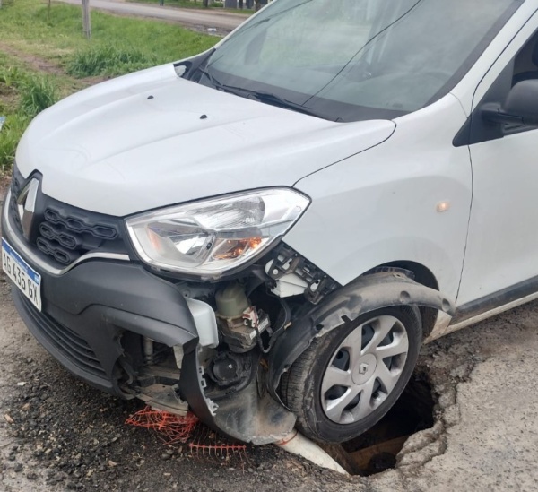 Según relataron testigos, el vehículo quedó atrapado en un bache cubierto caños y señalizado con una red, y no pudo salir por sus propios medios.