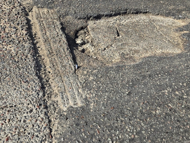 En 3 y 42 hay un pozo de importante tamaño, justo en la zona donde los micros de larga distancia realizan la maniobra de giro al salir de la Terminal de Ómnibus de La Plata.