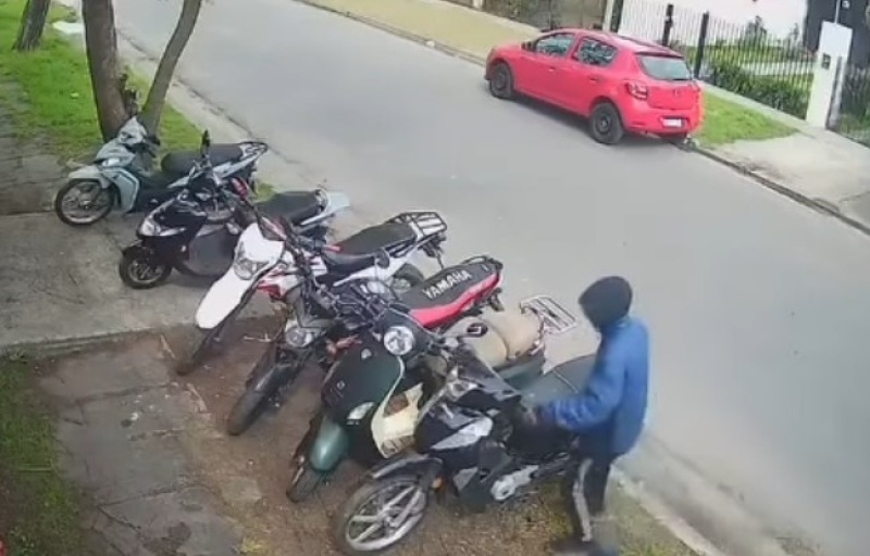 En las imágenes se puede ver cómo el ladrón se acerca con tranquilidad al vehículo, que estaba estacionado, y en cuestión de segundos logra encender la moto y darse a la fuga. Según consta en el video pareciera ser un taller donde se encontraban la mato ya que había otras cinco más.