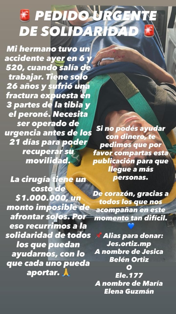 Según explicaron sus allegados, la cirugía debe realizarse antes de que se cumplan 21 días desde el accidente para garantizar una recuperación total de la movilidad. El problema es que el costo asciende a aproximadamente un millón de pesos, una cifra que la familia no puede cubrir por sí sola.