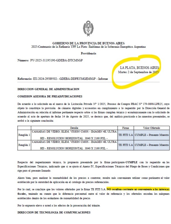 Sin embargo, el trabajo periodístico de Infocielo, a través de Albino Aguirre y La Cielo 103.5 de La Plata, demostró lo contrario. La comunicación se realizó directamente con las autoridades provinciales y se obtuvo el documento oficial de la licitación (Privada Nº 1/25, Expediente EX-2024-29589502-GDEBA-DDPRYMGEMSGP).