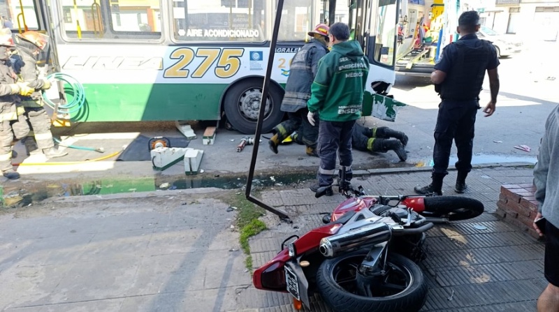 Tras el primer choque, el motociclista perdió el control del rodado, se deslizó sobre el asfalto y terminó golpeando contra un colectivo de la línea 275 de la empresa Fuerte Barragán, interno 265 al mando de Néstor Leonel Martínez.