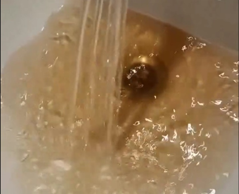 En los videos compartidos, se observa cómo, al abrir la canilla del baño, el agua sale de color marrón, y sucede en más de un lugar del hogar.