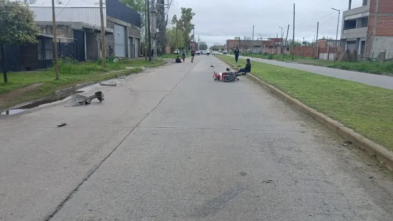 El siniestro se originó cuando un auto gris pasó a gran velocidad por la calle y terminó llevándose por delante a una motociclista. El golpe entre los rodados siguió escalando cuando, por el impacto, también afectaron a un peatón que transitaba por el paso vial.