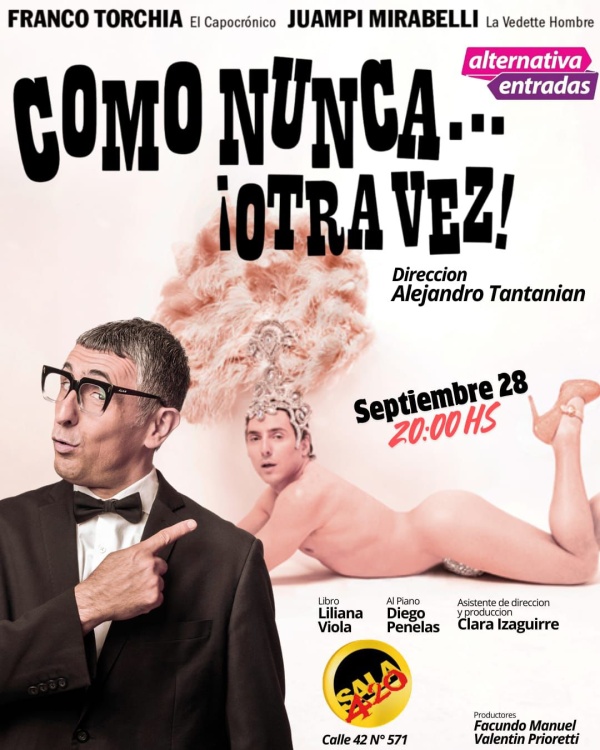 La función es este domingo 28 de septiembre a las 20 hs, y las entradas están a la venta a través de Alternativa Teatral. El espectáculo es apto para mayores de 16 años, por algunos contenidos y alusiones.