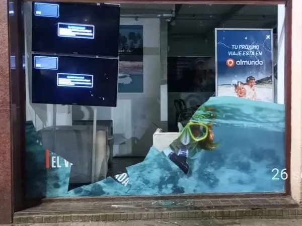 En el transcurso del enfrentamiento, los involucrados cayeron contra la vidriera de una agencia de viajes, provocando la rotura del cristal y aumentando el estado de alarma entre quienes se encontraban en la zona.