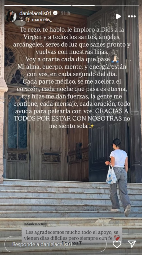 Daniela también reiteró el valor que han tenido las oraciones y mensajes de apoyo en este momento tan delicado. “Thiago ya sabe que están orando por él y lo agradece mucho”, expresó en sus redes, manteniéndose cercana a su comunidad mientras acompaña la recuperación del padre de sus hijas.