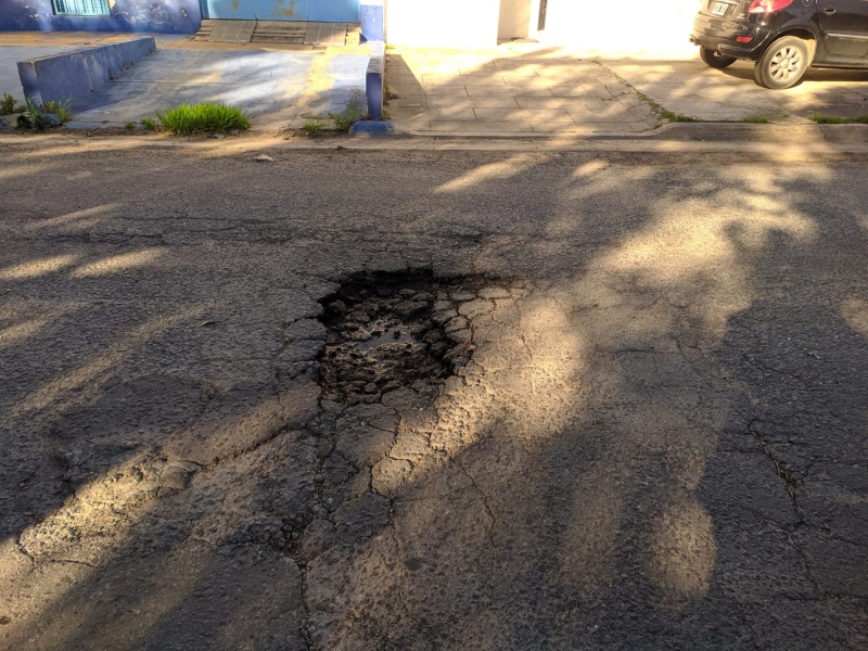 Al respecto, señalan que el hundimiento en el asfalto se viene agravando con el paso del tiempo y que, pese a los reiterados reclamos, aún no fue reparado. De acuerdo con uno de los vecinos, la acumulación de agua de lluvia y el desgaste del pavimento profundizaron el pozo, dificultando la circulación.