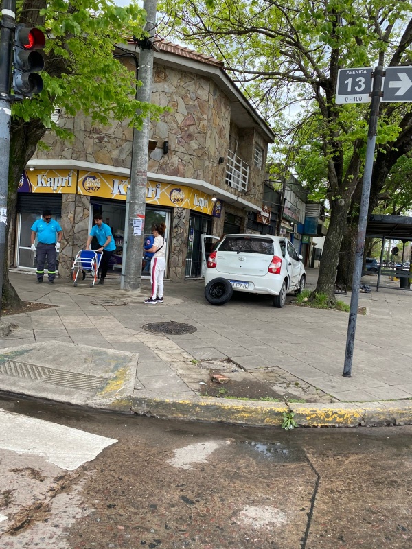 La esquina de las avenidas 13 y 32, en La Plata, fue el escenario de un fuerte accidente de tránsito. Este domingo, un Fiat Palio y un Toyota Etios chocaron violentamente y uno de los vehículos terminó sobre la vereda.