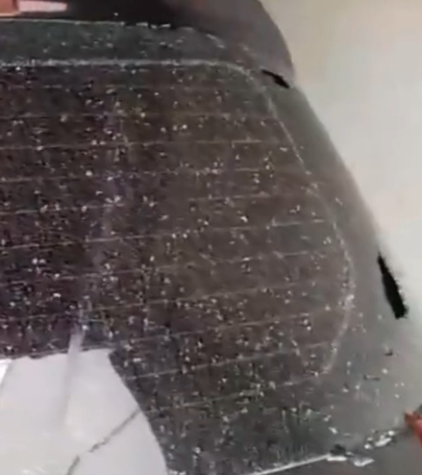 El ataque, ocurrido mientras el auto se encontraba estacionado, dejó como saldo la luneta trasera del rodado severamente dañada, con múltiples perforaciones producto del impacto de las piedras. Las imágenes del vehículo muestran la magnitud de la violencia con la que se produjo el hecho.