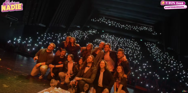 El video culminó con una escena en la que el teatro quedó a oscuras y el público iluminó la sala con las linternas de sus celulares, generando una atmósfera conmovedora que emocionó a todos los integrantes del equipo.