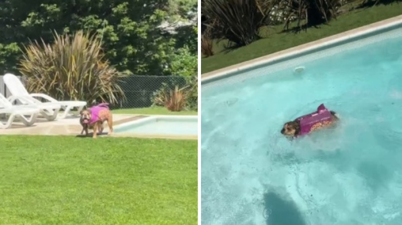 “Ella quiere que yo la mire”, confirmó la joven. Asi mismo, ante la cuenta de tres, la perra salta hacia el agua con un chaleco inflable que la mantiene a flote pese a nadar sin problemas hacia las escaleras de la pileta tras el chapuzón. “Realmente demandan mucho más que nenes que conozco”, admitió la dueña de la cuenta mientras procede a continuar el video frente a cámara y continuar su almuerzo.