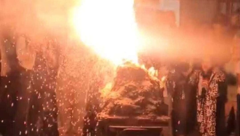 El momento quedó registrado por los celulares de los presentes. En los videos se observa cómo, en cuestión de segundos, la mezcla utilizada para la simulación detona y lanza fragmentos hacia el público.