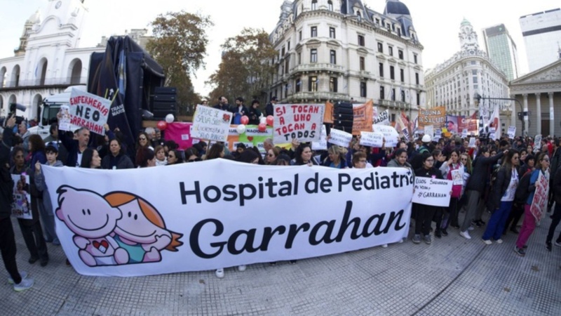 “Si el Presidente y sus funcionarios no cumplen con la ley del Garrahan, no van a tener paz con nosotros“, declararon desde los gremios que representan al personal de salud del hospital pediátrico.