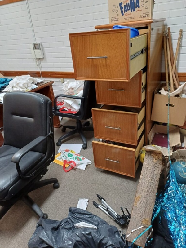 El ladrón forzó puertas revisó varias oficinas en busca de dinero y revolvió cajones y placares en al menos cuatro dependencias, ingresó a aulas y pasillos, dejando un amplio desorden a su paso y causando importantes daños en su recorrido.