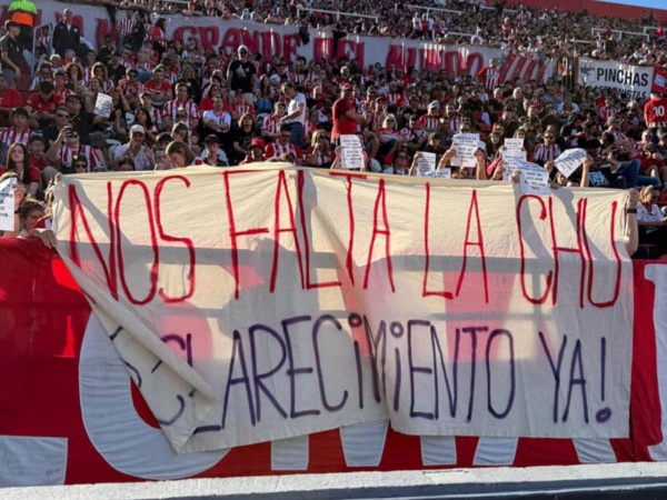 El reclamo se hizo visible desde distintos sectores del estadio, sobre las populares de 57 y la platea de 55 se desplegaron banderas con mensajes de justicia como “nos falta la Chu, esclarecimiento ya”, mientras que también se repartieron panfletos entre los hinchas para visibilizar el caso y exigir respuestas ante lo ocurrido.