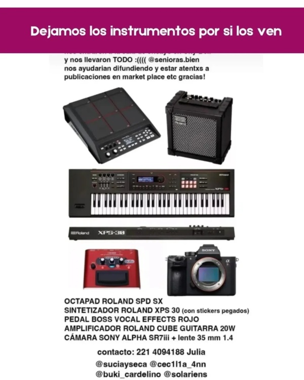 En las últimas horas, una banda platense sufrió el robo de sus equipos a días de tener una presentación en un reconocido centro cultural de la ciudad. Las damnificadas fueron las integrantes de "Señoras Bien".