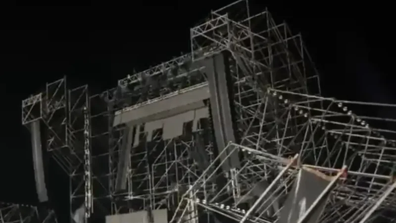 Un fuerte temporal golpeó San Nicolás y provocó el colapso de parte del escenario principal de la Fiesta de Disfraces. La organización ya había postergado la apertura para resguardar al público.