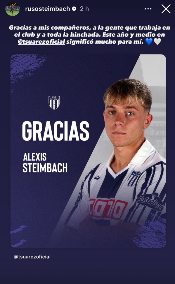 Cabe destacar que varios futbolistas no continuarán en la institución mientras que otros deberán regresar y presentarse al inicio de la próxima temporada. En ese sentido quien confirmó que no seguirá en Tristán Suarez es Alexis Steimbach que a través de un posteo en su cuenta de instagram expresó: "Gracias por este año y medio lleno de aprendizaje y momentos que voy a recordar siempre. Gracias a todos mis compañeros, a toda la gente que labura en el club y a quienes apoyaron día a día. Fue una etapa muy linda y me llevo mucho de cada uno".
