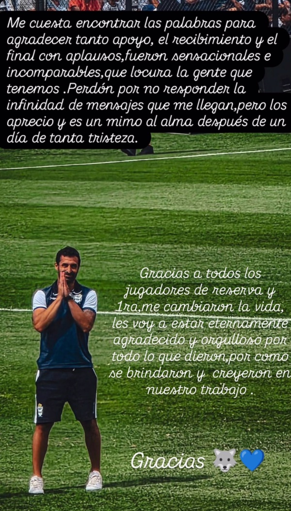 En las ultimas horas y ya sin la adrenalina de estar en plena competencia el técnico albiazul, que asumió en un complejo momento deportivo y que en el corto plazo será oficializado como el conductor de Gimnasia, publicó en su cuenta de instagram y resumió su corto pero intenso proceso.
