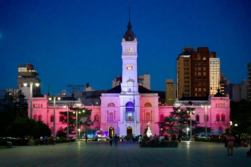 Como parte de los festejos, el Palacio Municipal de La Plata se iluminó de rojo y blanco en un gesto simbólico que reflejó la alegría y el reconocimiento de toda la ciudad hacia el flamante campeón.
