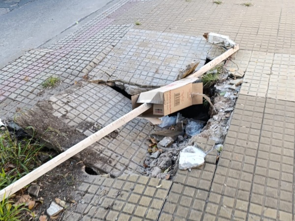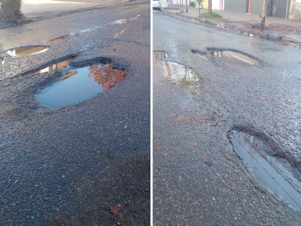 El reclamo a metros de Plaza Malvinas corresponde a un cráter que se generó en el centro del asfalto que afecta a la circulación
