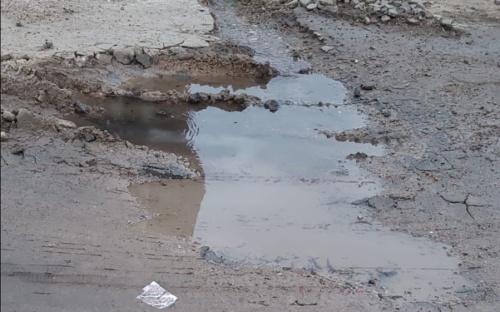 A metros de la Escuela N°83, la arteria permanece sin pavimentar, llena de barro y con grandes pozos de agua que dificultan el paso