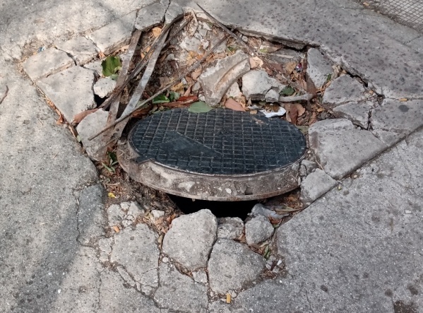 Un pozo con acumulación de barro dificulta el paso en la cuadra de 65 entre 146 y 147