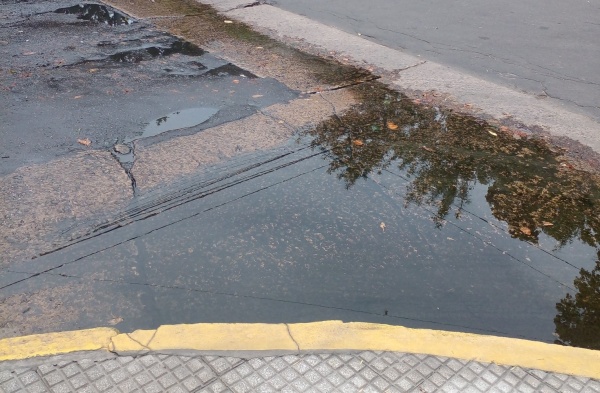Preocupación por un bache que se inunda en plena zona escolar en 7 y 76
