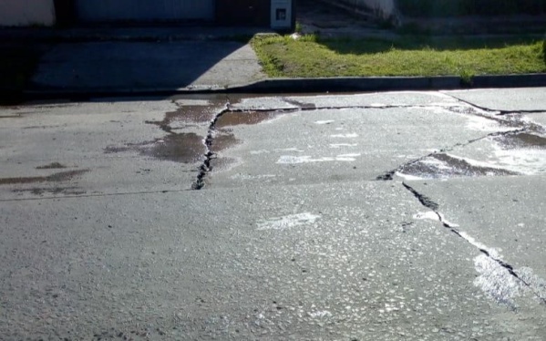 El reclamo a metros de Plaza Malvinas corresponde a un cráter que se generó en el centro del asfalto que afecta a la circulación