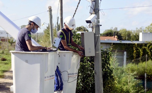 El intendente Julio Garro realizó una recorrida por la localidad, donde supervisó la instalación de nuevas cámaras de seguridad, que se suman a la red de prevención del delito