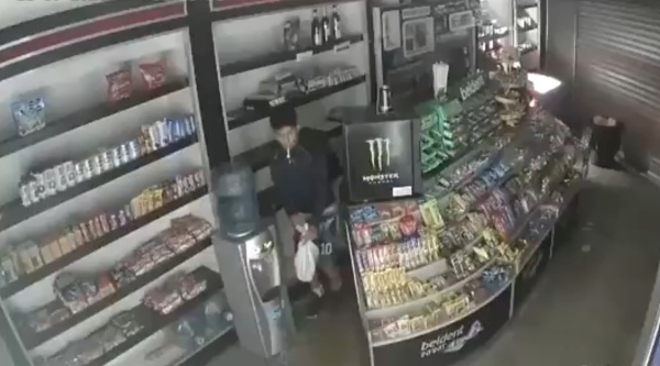 El ladrón quedó filmado por las cámaras de seguridad del local. Usó una regla para mover los fajos de billete y sacarlos. También vació la gaveta con el fondo fijo