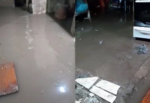 Quienes viven en la localidad de Los Hornos deben transitar por la calle y la vereda llenas de agua y barro