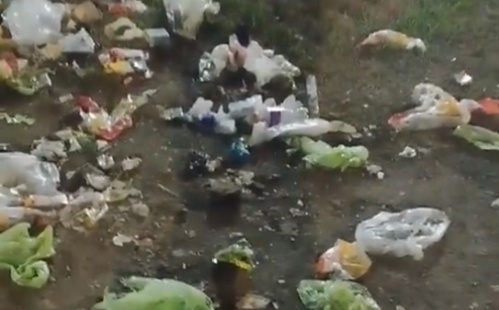 Una persona de la localidad platense se quejó del estado de la vía pública, repleta de bolsas de residuos sin juntar y con las luces de la calle que no funcionan