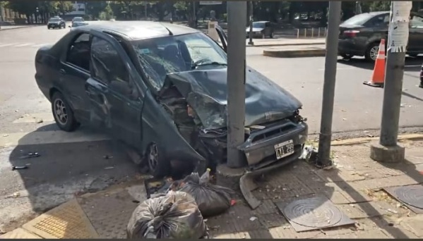 Un taxista chocó de frente el bicicletero de Plaza San Martin