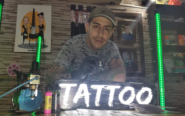 Emanuel tiene un trabajo bastante rutinario pero desde hace 6 años empezó a meterse en el mundo del tatuaje. Finalmente, en la pandemia su pareja lo empujó a empezar: "Fue increíble"