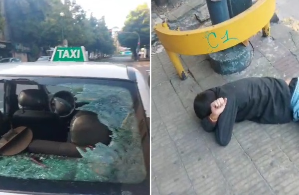 Máxima violencia en Diagonal 80 y 5: un taxi destrozado, y dos sujetos insultados y golpeados