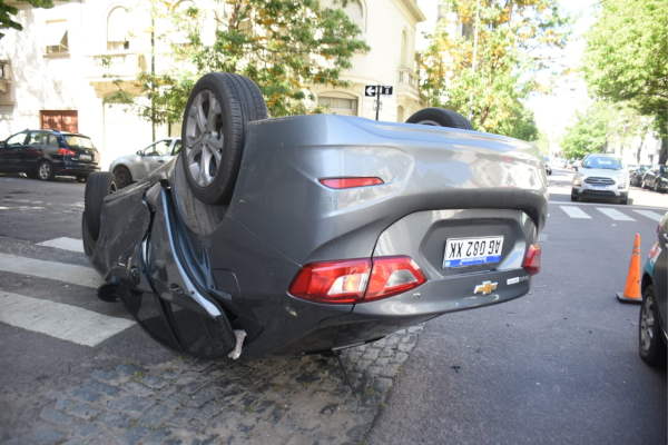Un auto chocó y volcó en el casco urbano de La Plata