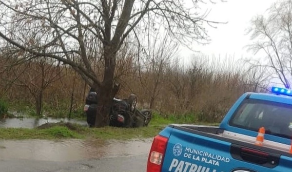 Impactante accidente terminó con una camioneta volcada contra un árbol en City Bell